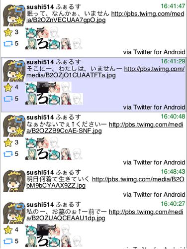 複数枚画像が添付されたツイートについて、各画像のURLを展開して表示pic.twitter.com を使って画像がアップロードされている場合、画像が1枚でも展開後のURLが表示されるようになりました自分がリツイートしたツイートがふぁぼられた時、それを表示機能追加…